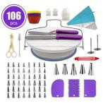 ケーキ回転台 ケーキ装飾台 絞り口金セット 絞り袋 絞り口金 ケーキ作り用 ターンテーブル 滑り止め ターンテーブル ベーキング ツール 106pcs